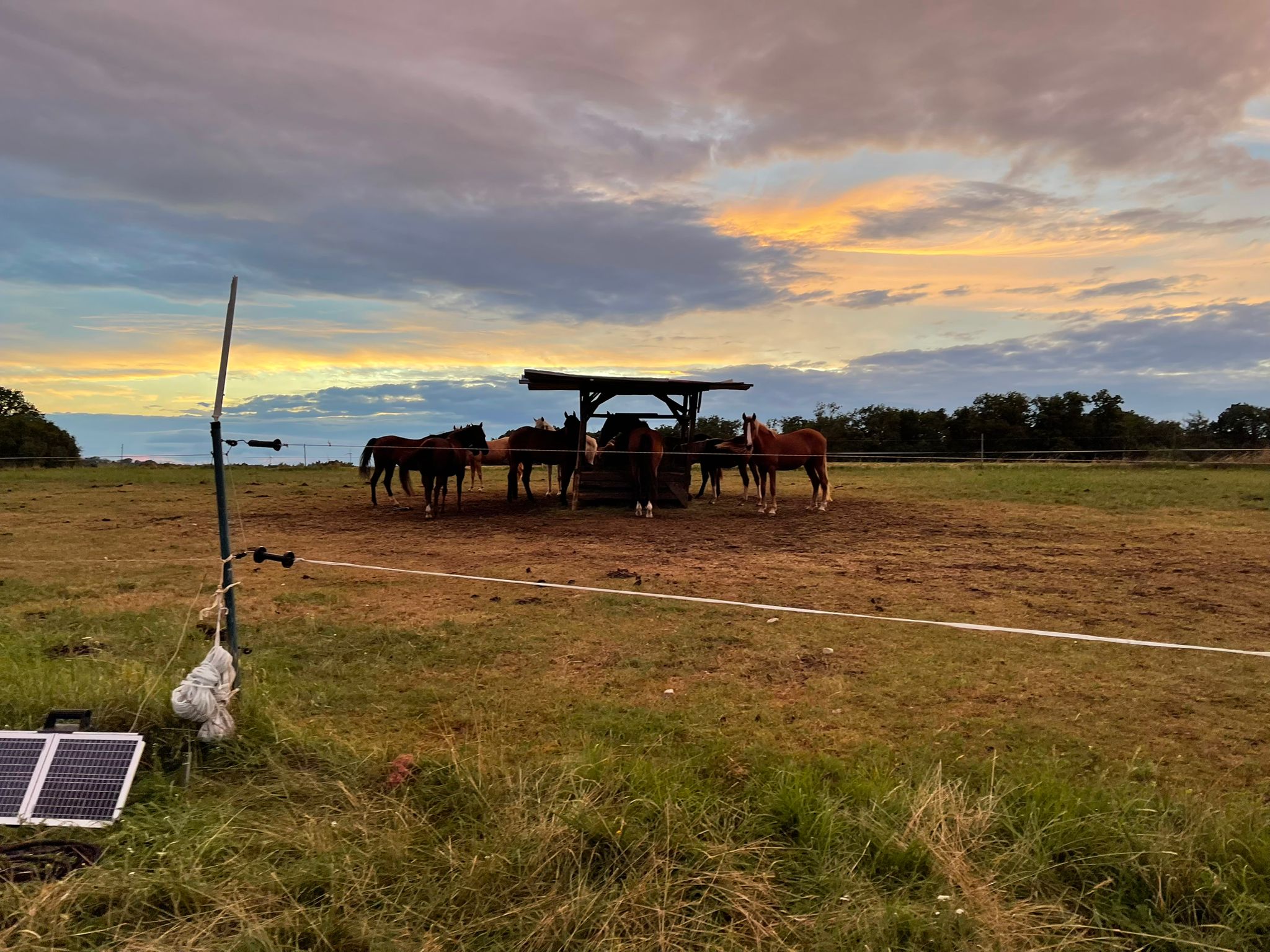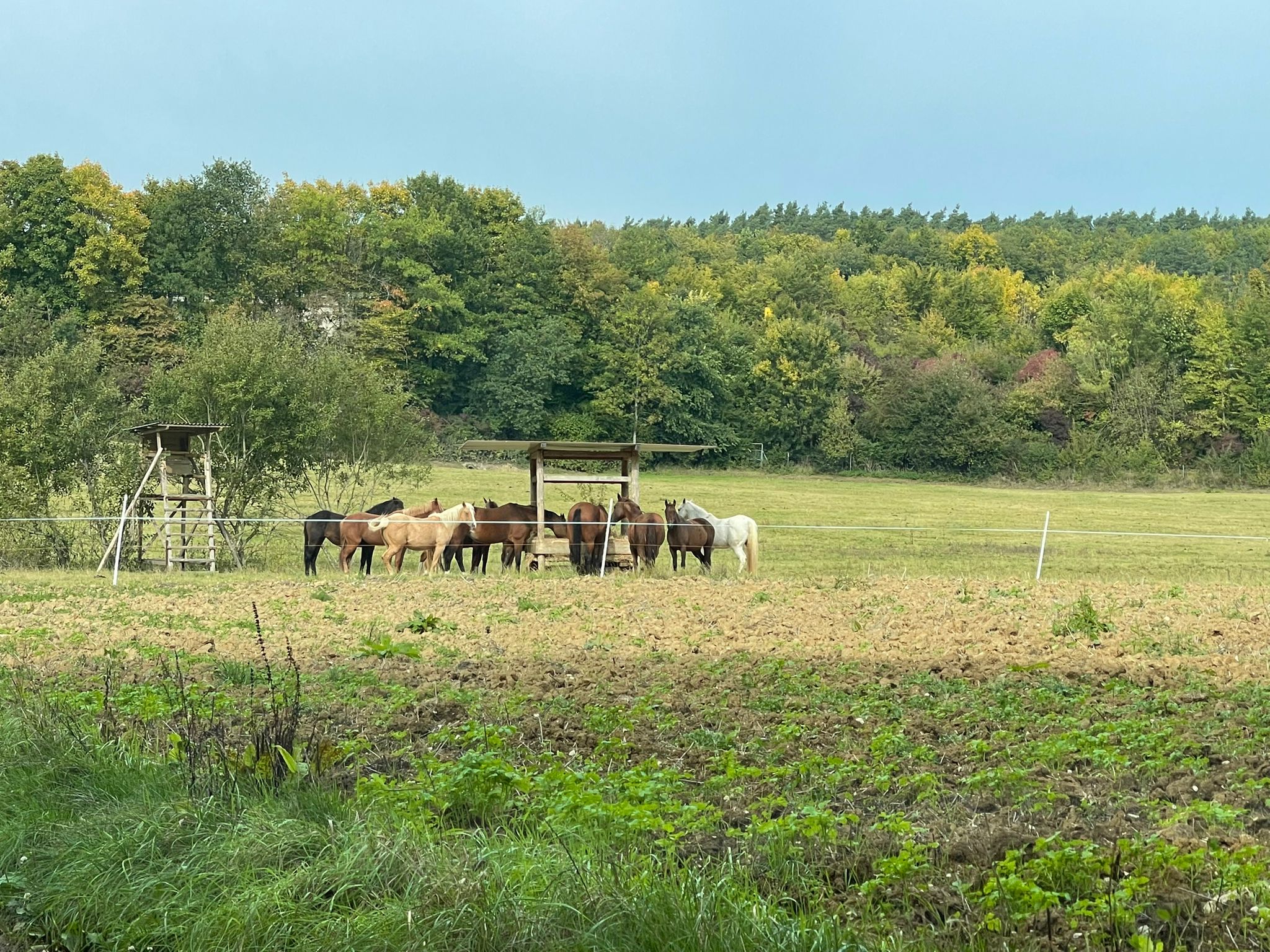 Hierfür stehen im Winter die großzügigen Offenställe zur Verfügung und im Sommer genießen unserer Herden ihr Leben 24 Stunden auf riesigen Weiden, die durch den Baumbestand auch ausreichend Schatten bieten.